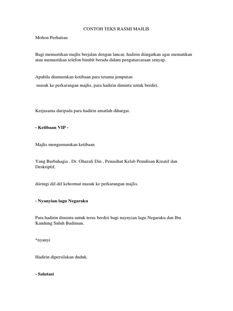 PERSIAPKAN SKRIP PENGACARA MAJLIS EMCEE UNTUK KU. Contoh teks emcee majlis rasmi. Hadirin yang dihormati sekalian majlis dengan penuh takzimnya menjemput yang berbahagia.