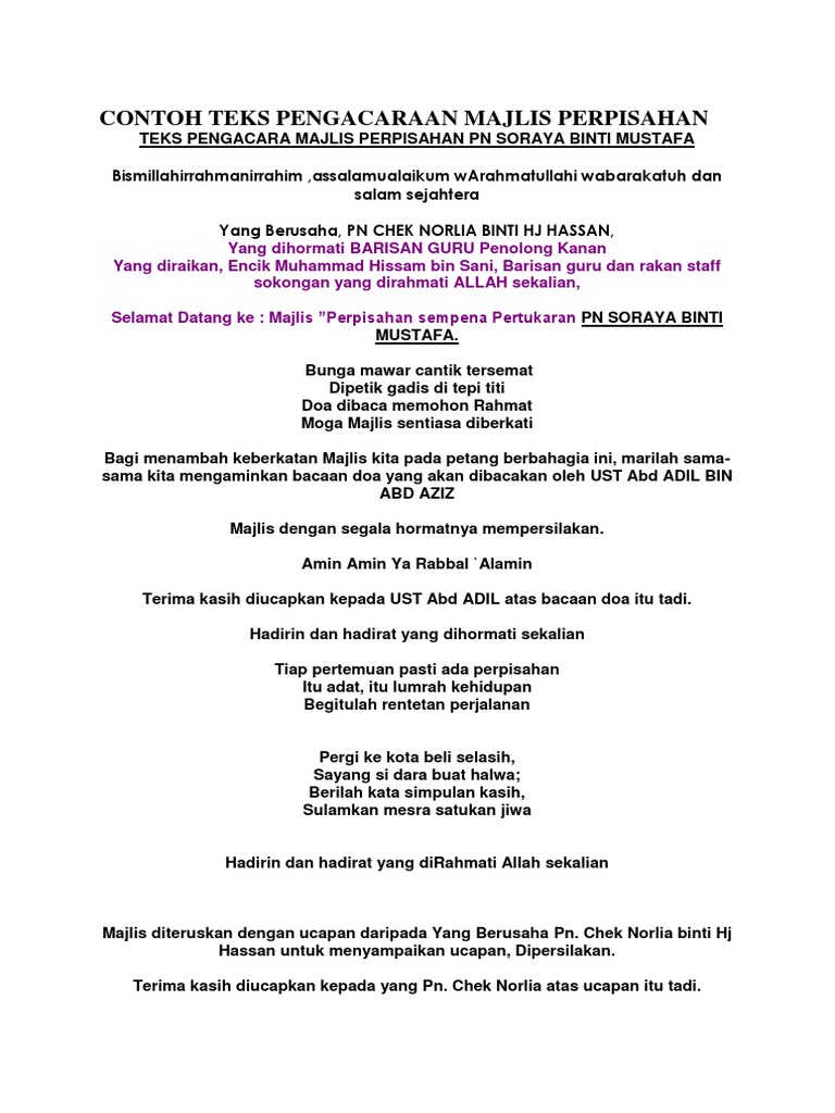 Contoh Teks Pengacaraan Majlis Perpisahan Pdf